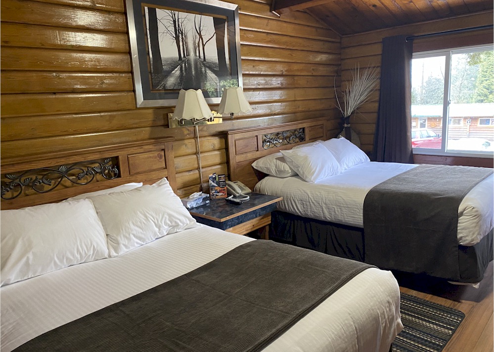Our beautifullly built and furnished Cabins and Lodge property offers high speed wireless internet, private decks on our cabins, a laundry facility as well as BBQ and fire pits for outdoor cooking enthusiasts. Noted below, we also offer RV sites for guests who wish to bring their accomodation with them. Direct bookings can be made by email or phone calls. We offer all-inclusive meal and room plans for groups upon request. When you're ready for a good nights sleep, the rooms at Kitimat Lodge have large double beds and fresh linens.