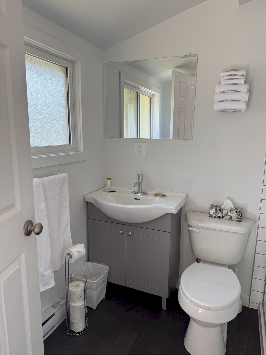 Kitimat Lodge Deluxe Suites with Kitchen are fully equipped fabulous newly renovated bathrooms with a full complement of towels, soaps an shampoos for wash-up and shower.