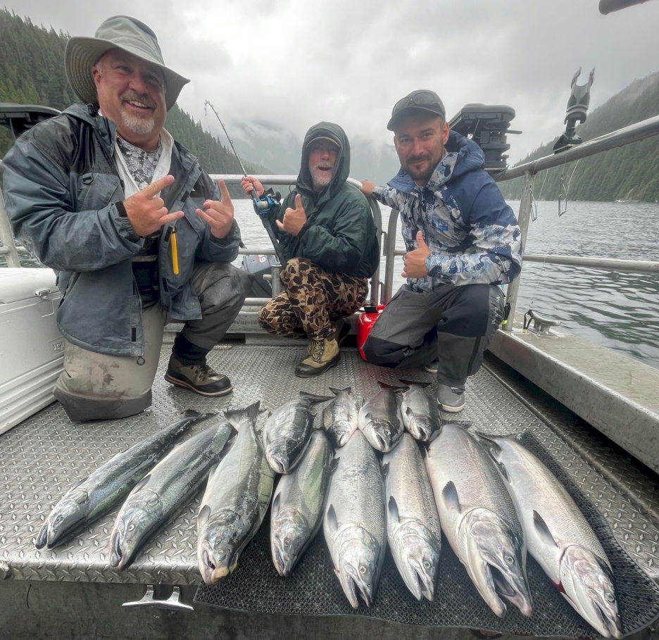 Saltwater Fishing tours throughout May, June, July, August and September on 97rb Kitimat River Estuary Jetboat and Douglas Channel 30ft Saltwater Passenger vessel for Chinook, Coho, Halibut and Crab. Group Tours, half days and more.